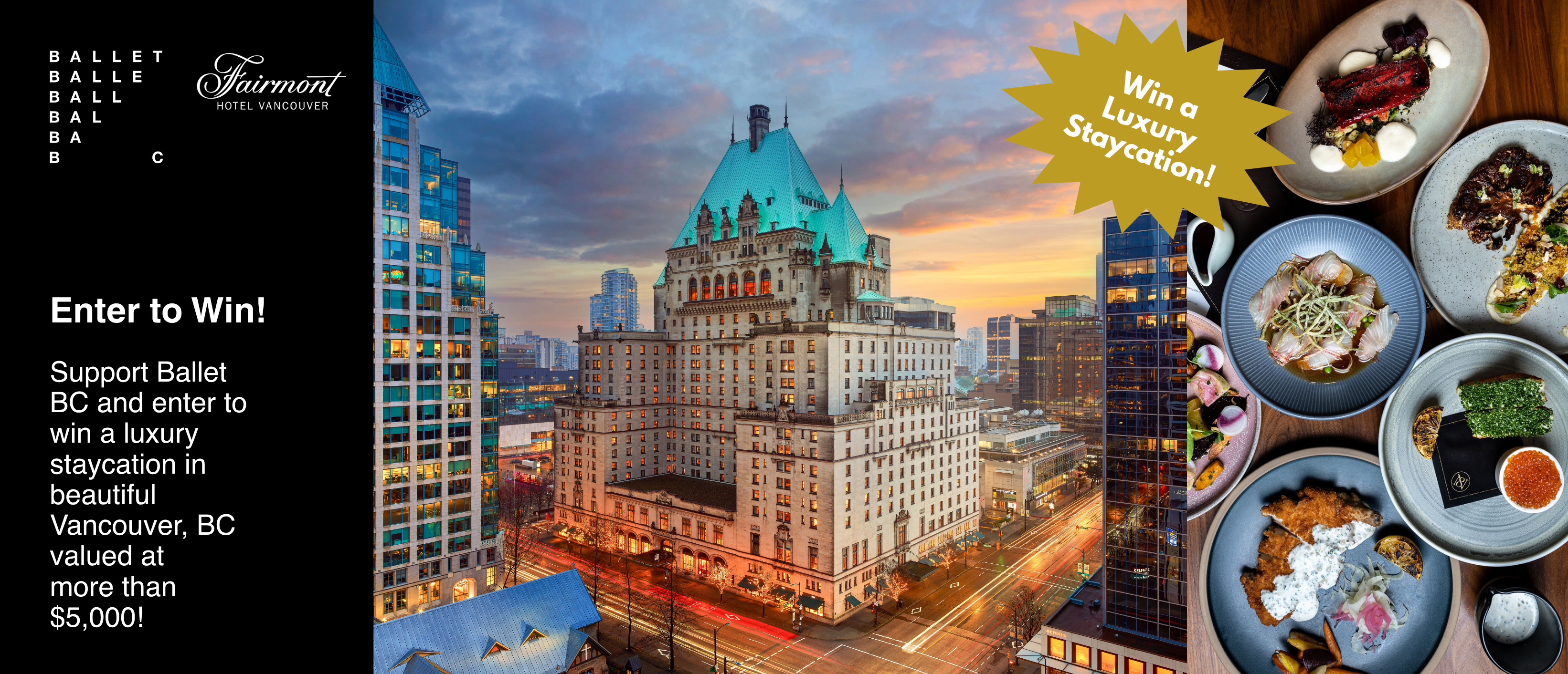 Purchase 1 or 100 tickets for your chance to win the ultimate Vancouver staycation experience valued at over $5,000, all while supporting Ballet BC, one of Canada’s most innovative and celebrated dance companies!